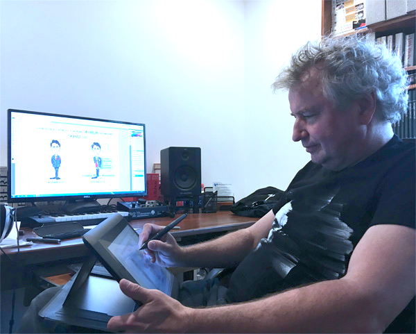 Pour la petite histoire, sachez que je dessine depuis toujours. Que j’ai publié au fil des années plusieurs BD et caricatures dans «Croc», «Perspectives», «Québec Rock», «Main-Mise» et quelques autres publications québécoises. Et qu’à la fin de l’année 2018, après une longue pause côté dessin, et suite à l’achat d’une intrigante et stimulante tablette numérique, j’ai eu un véritable déclic et j’ai redécouvert le plaisir de dessiner. Renouant pour de bon avec mes premières amours.